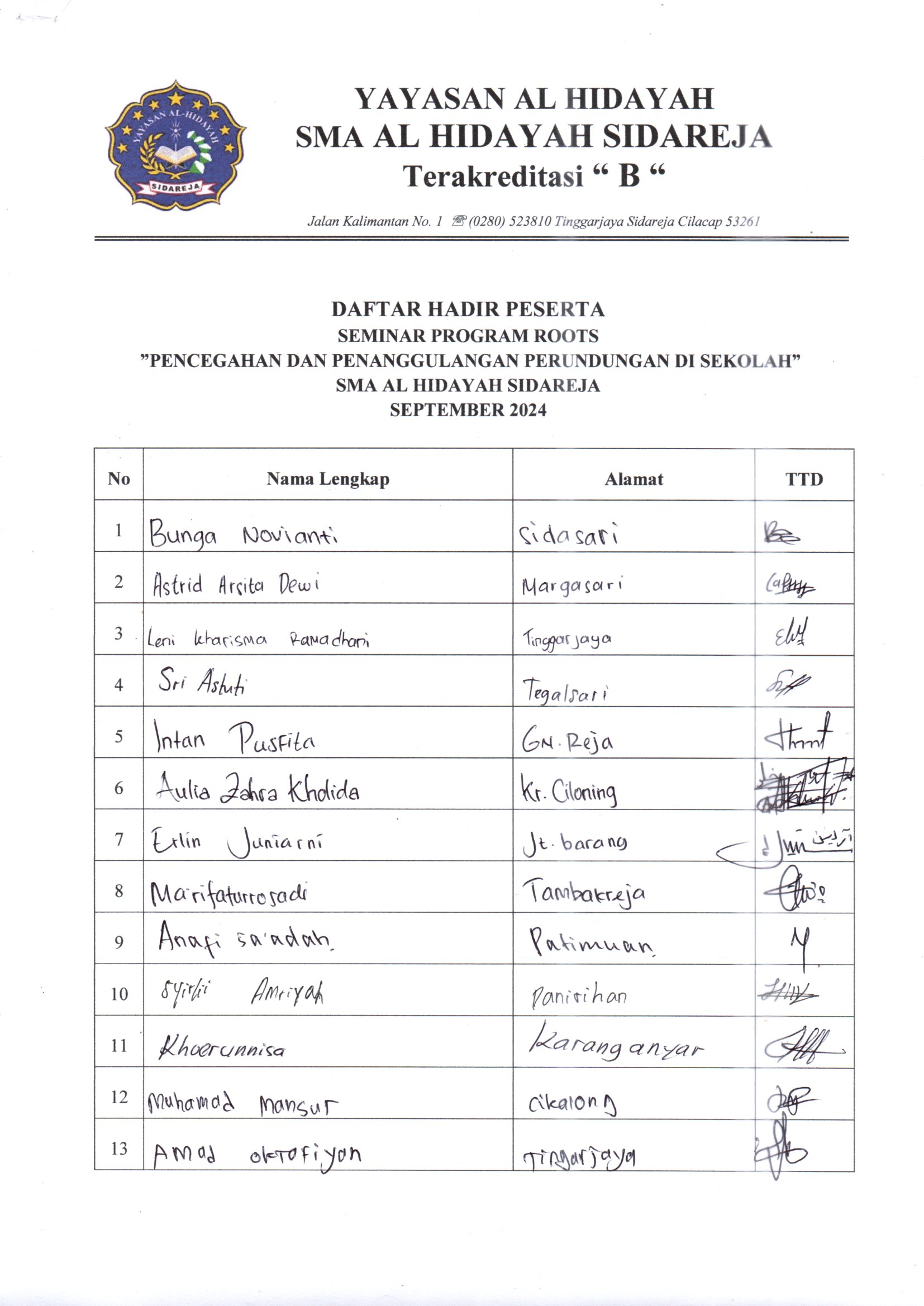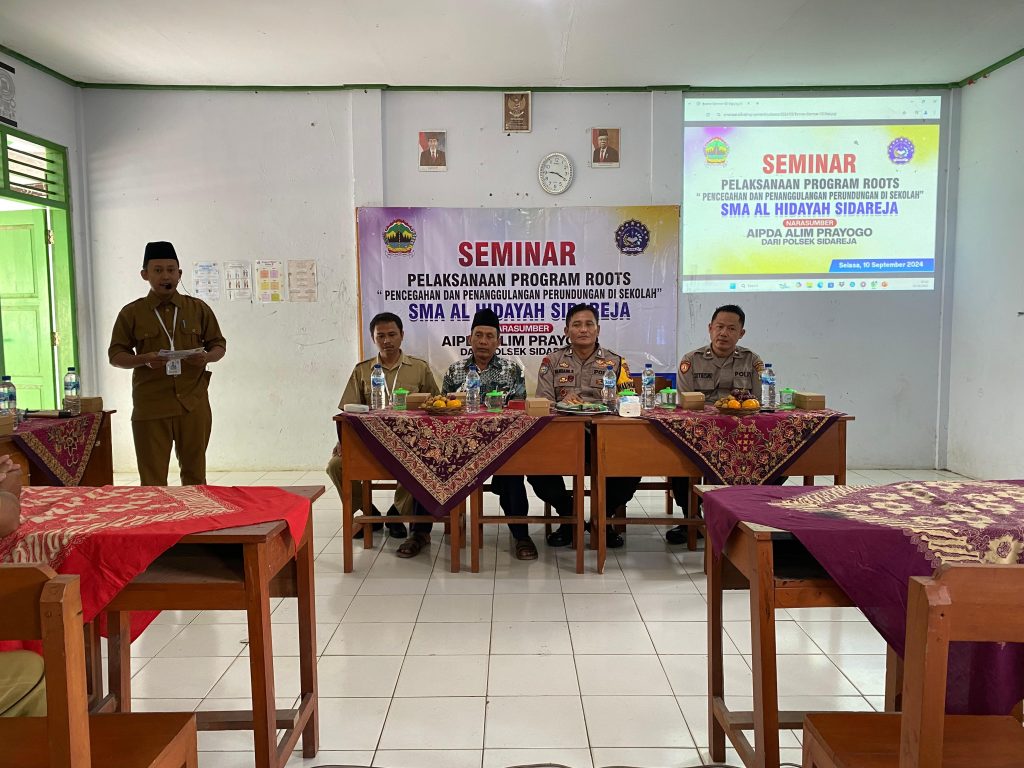 SMA Al Hidayah Sidareja dengan bangga mengumumkan telah diadakannya seminar penting sebagai bagian dari program roots kami. Acara ini membahas topik yang sangat relevan dan penting bagi komunitas sekolah kita: “Pencegahan dan Penanggulangan Perundungan di Sekolah”.